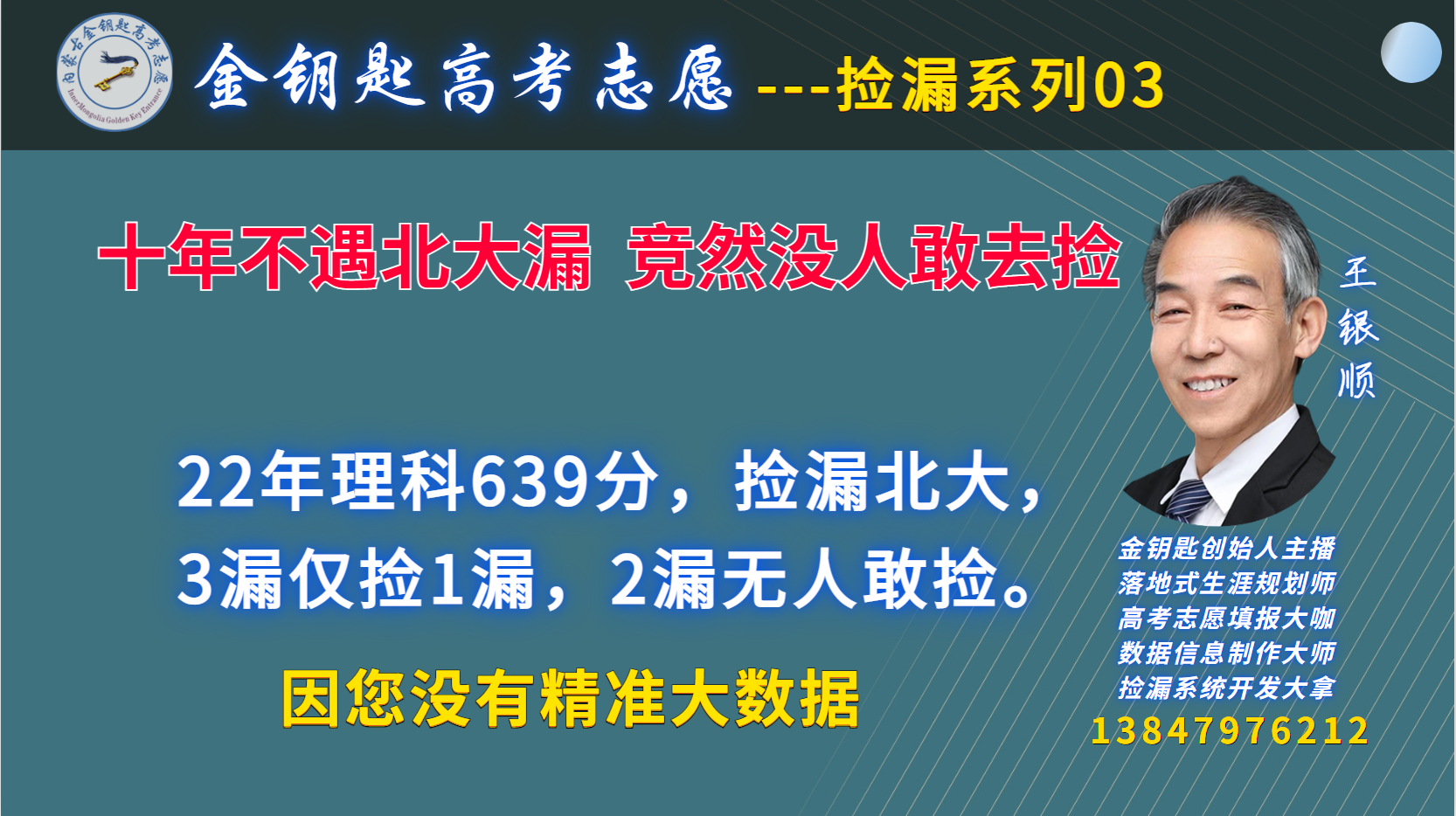 23-45【金钥匙脱档系列11】精准大数据,补报有底气16’